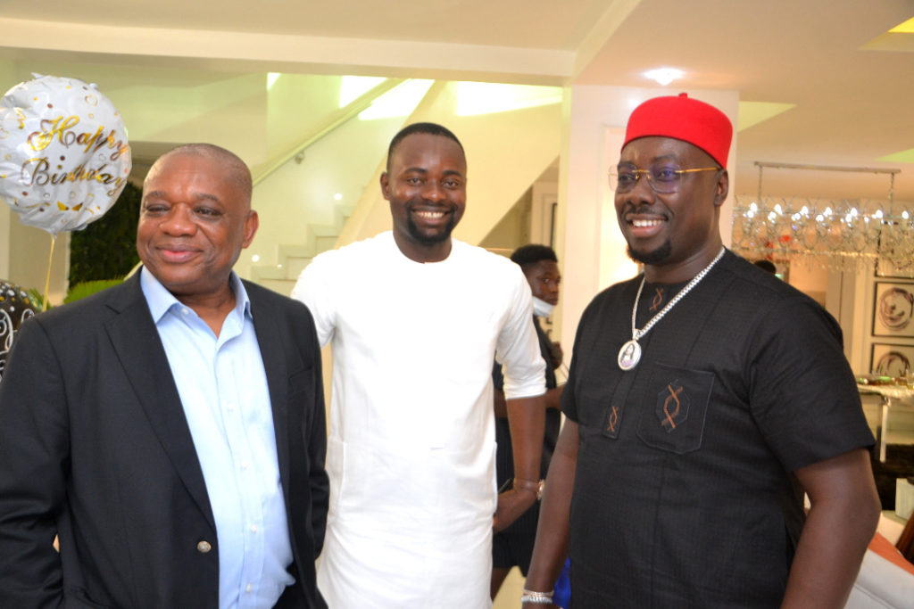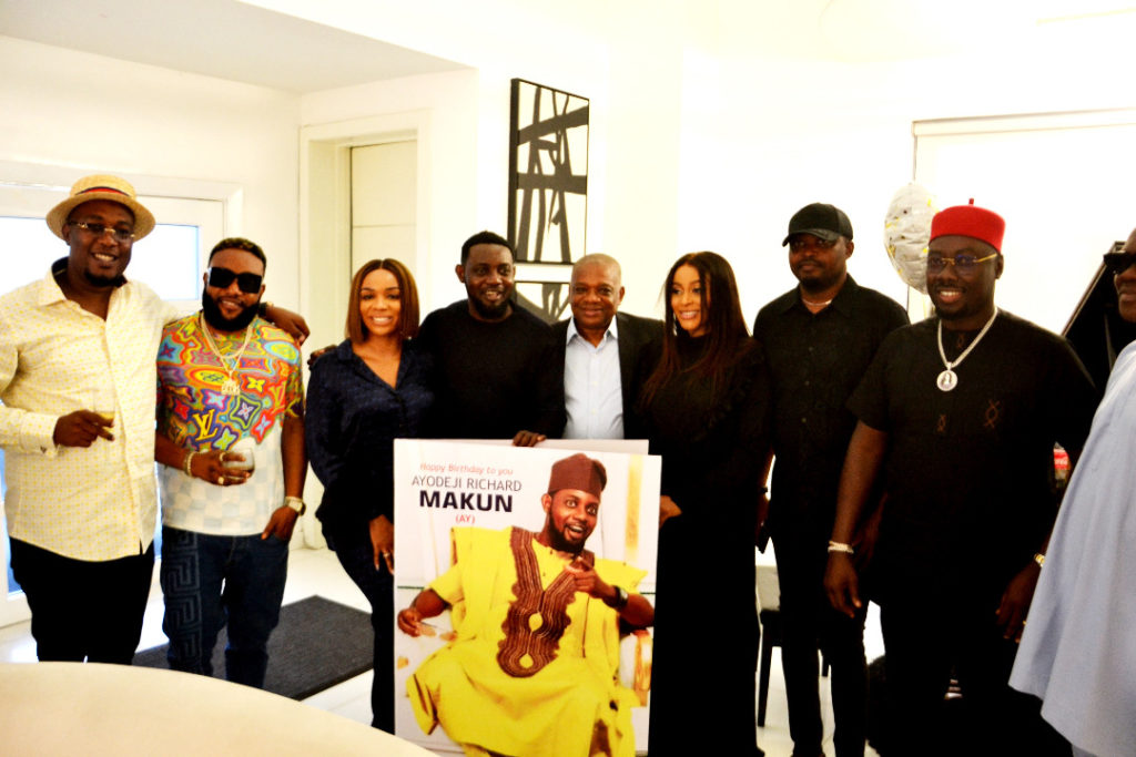 As part of activities marking his golden jubilee birthday anniversary, ace comedian and actor, Ayo Makun, popularly known as “AY” and his beautiful wife, Mabel, hosted former Governor of Abia state and Chief Whip of the Senate, Dr. Orji Uzor Kalu at their Lekki residence on Sunday.