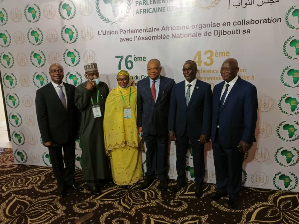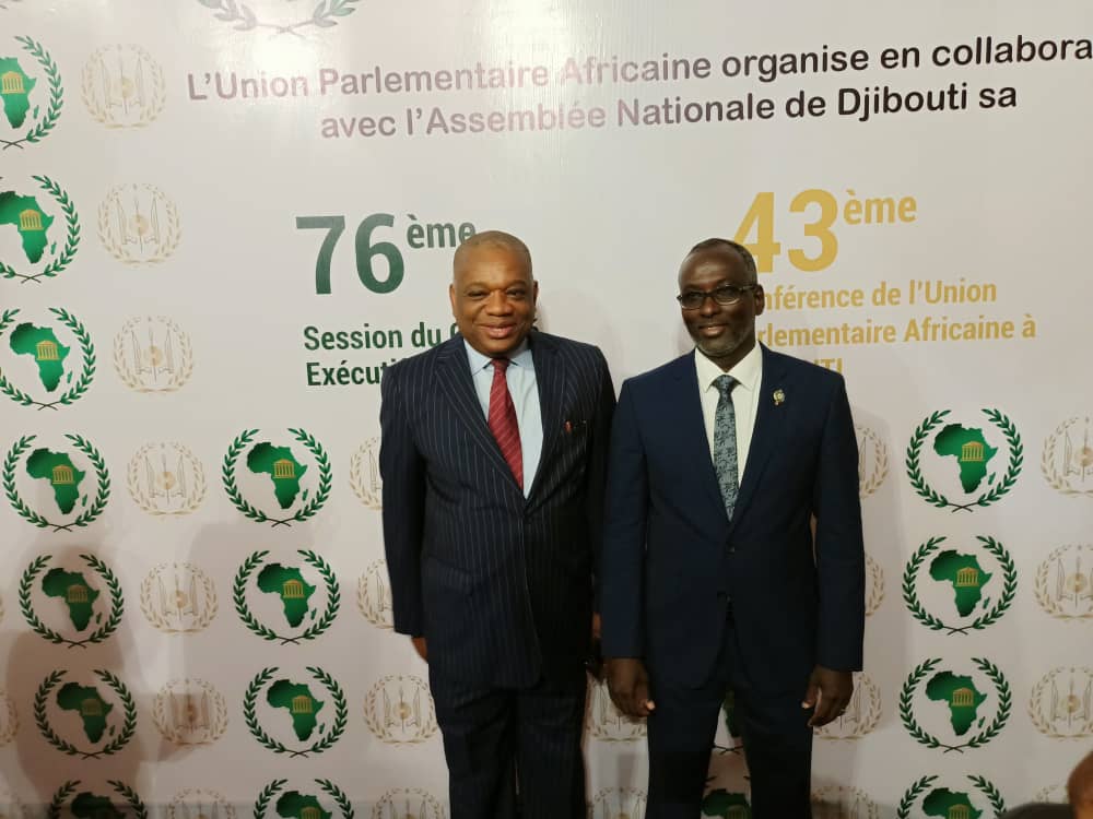 Chief Whip of the Senate and leader of the National Assembly delegation, Senator Orji Kalu and the Speaker National Assembly of Djibouti, Hon. Mohamed Ali Houmed at the 76th Session Of The Executive Committee And The 43rd Conference Of The National Parliamentary Assembly Of African Parliamentary Assembly Union in Djibouti on Monday.
