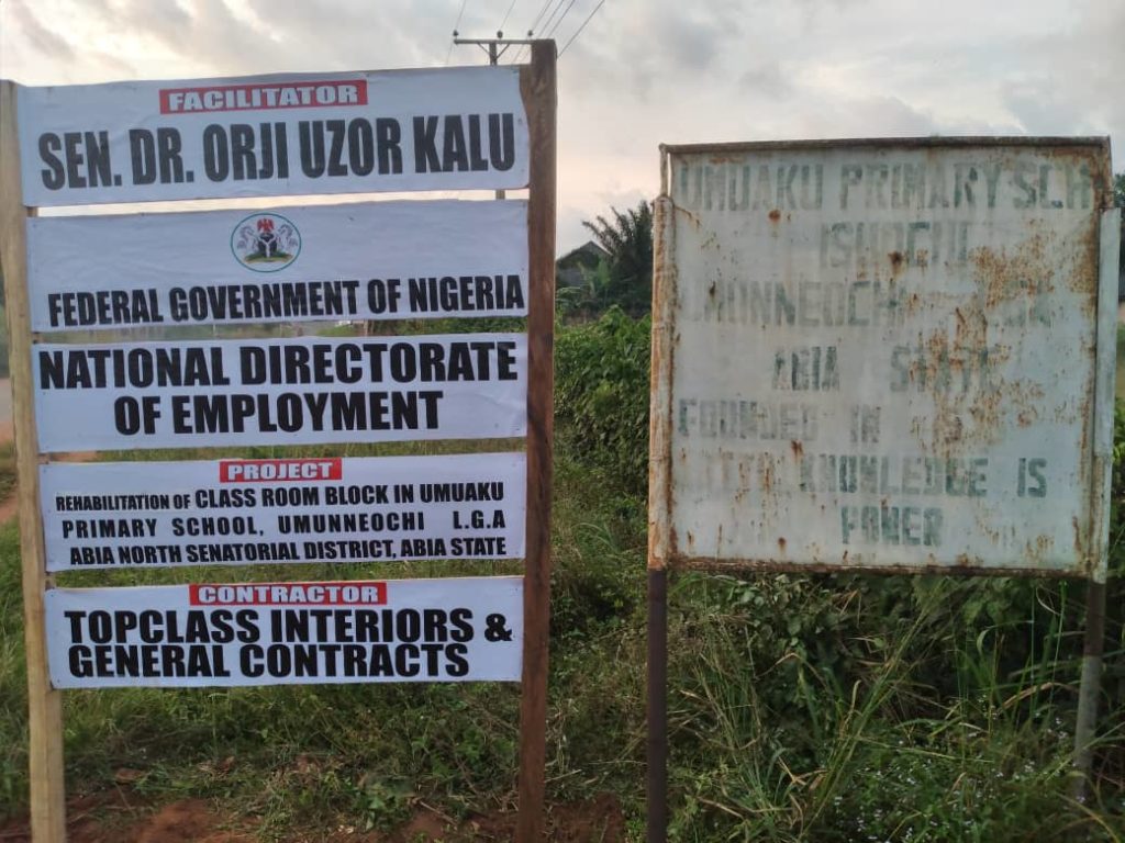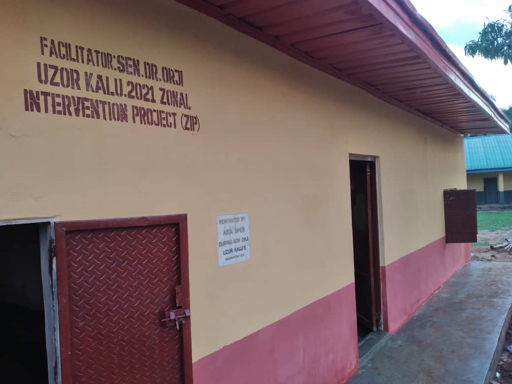 Kalu had earlier renovated and reconstructed schools in Ohafia, Bende, Arochukwu and Isuikwuato. He has also completeed more than 28 roads, with expectations of completing others. Prior to the infrastructural overhauling by Senator Kalu the primary schools was in a sorry state characterized by bushes, dilapidated structures, roofless & windowless classrooms. The condition of the school not only obstructed the learning process but also posed as danger to the staff and students.